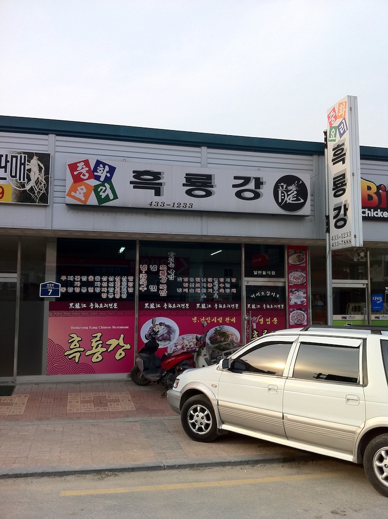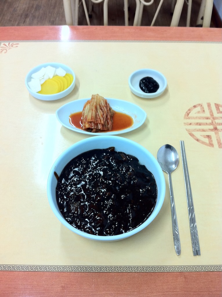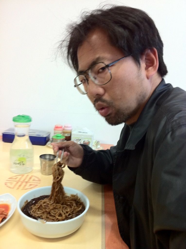 ガハハハハ!全身黒ずくめの格好で黒いタレのジャージャー麺を喰ってるぜ!しかも店の名前は「黒龍江」だ!