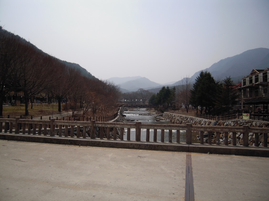 バス乗車、九千洞のバスターミナルに到着。徳裕山国立公園に入って歩き続けること約30分、本日最初のターゲットである九千洞守護碑を撮影。