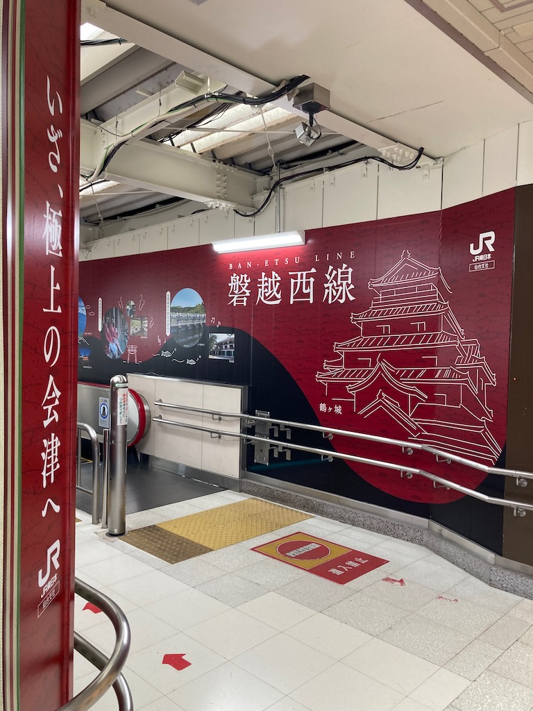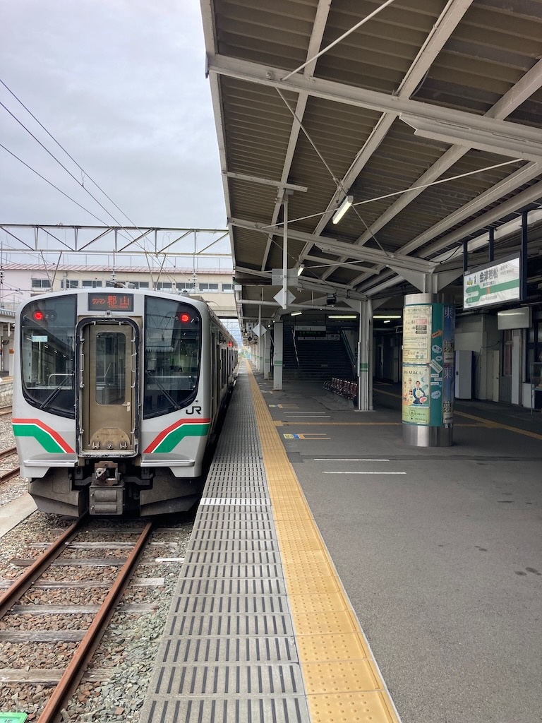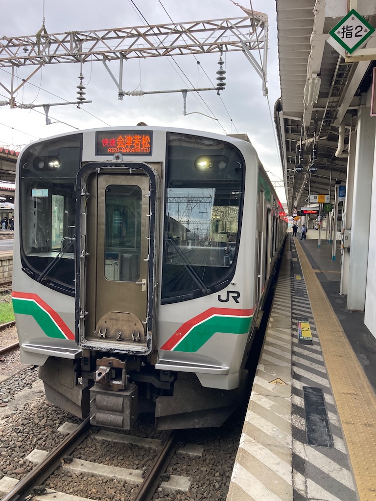 水郡線・磐越東線・磐越西線(電化区間)を乗りつぶす2泊3日の旅行の3日目。駅前サウナ24をチェックアウト、郡山駅のニューデイズでクリームボックスキャラメルボックス酪王カフェオレを買う。磐越西線で会津若松。立ちそば処鷹で冷やしとろろそばを食う。