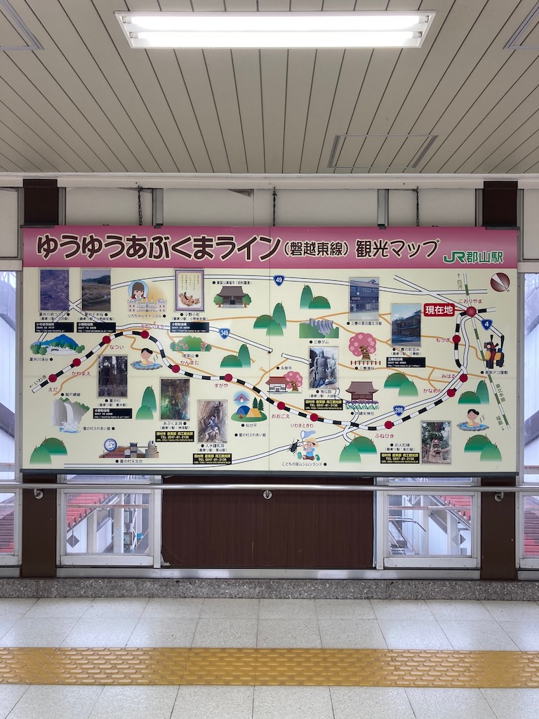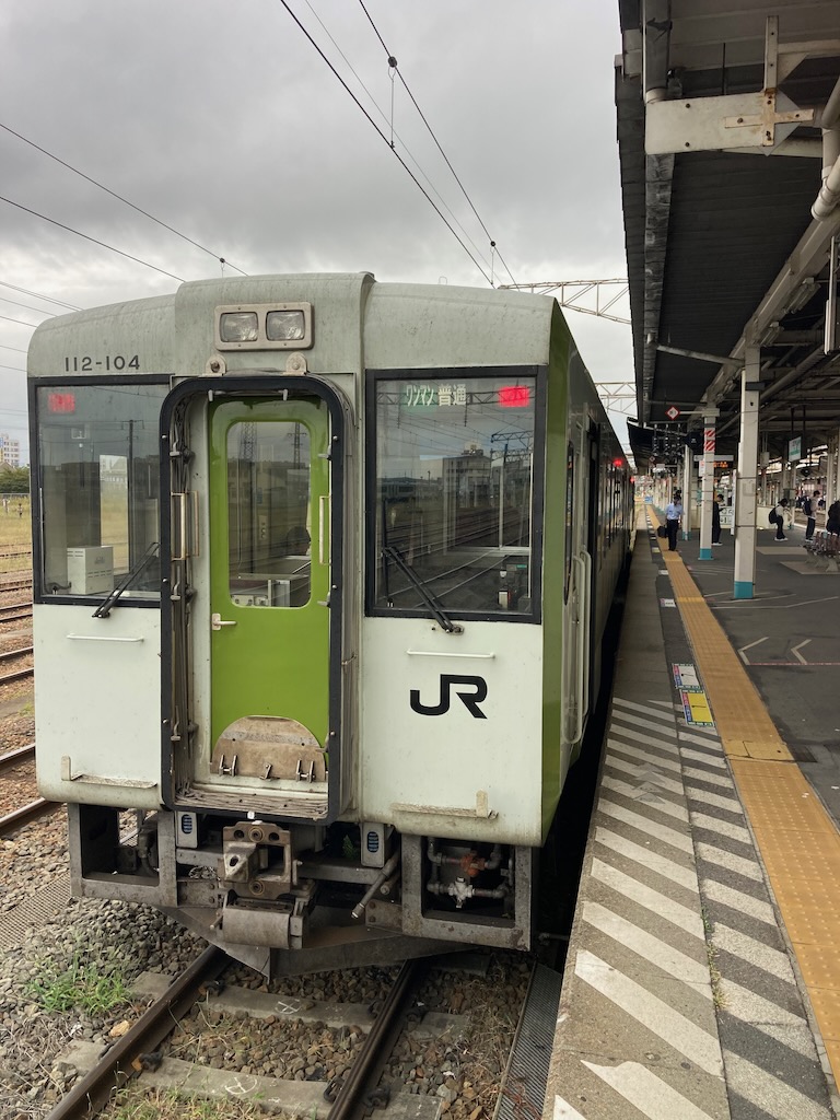 水郡線・磐越東線・磐越西線(電化区間)を乗りつぶす2泊3日の旅行の2日目。駅前サウナ24をチェックアウト、郡山駅のニューデイズで福島県産米食べ比べセット酪王カフェオレみそぱんを買う。磐越東線で霧雨降る阿武隈高地を越え、いわき。折り返しの郡山行きは4時間後。